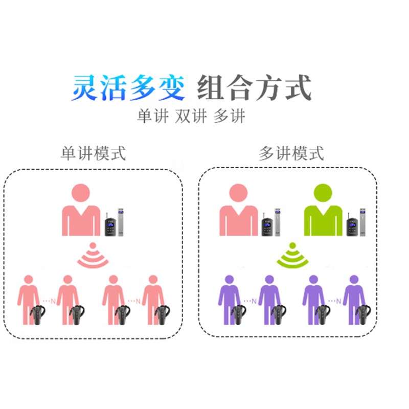 ●雙講功能:發射機無線按任何按鍵,實現雙人同時講話